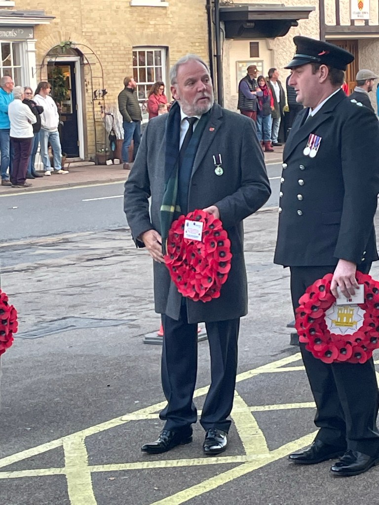 Clare was the final port of call. Another huge turnout for the parade from the fire-station to the church for a service and then on to the memorial for wreath laying. It was my honour to lay a wreath for West Suffolk Council. Tea and cakes to finish, lovely.