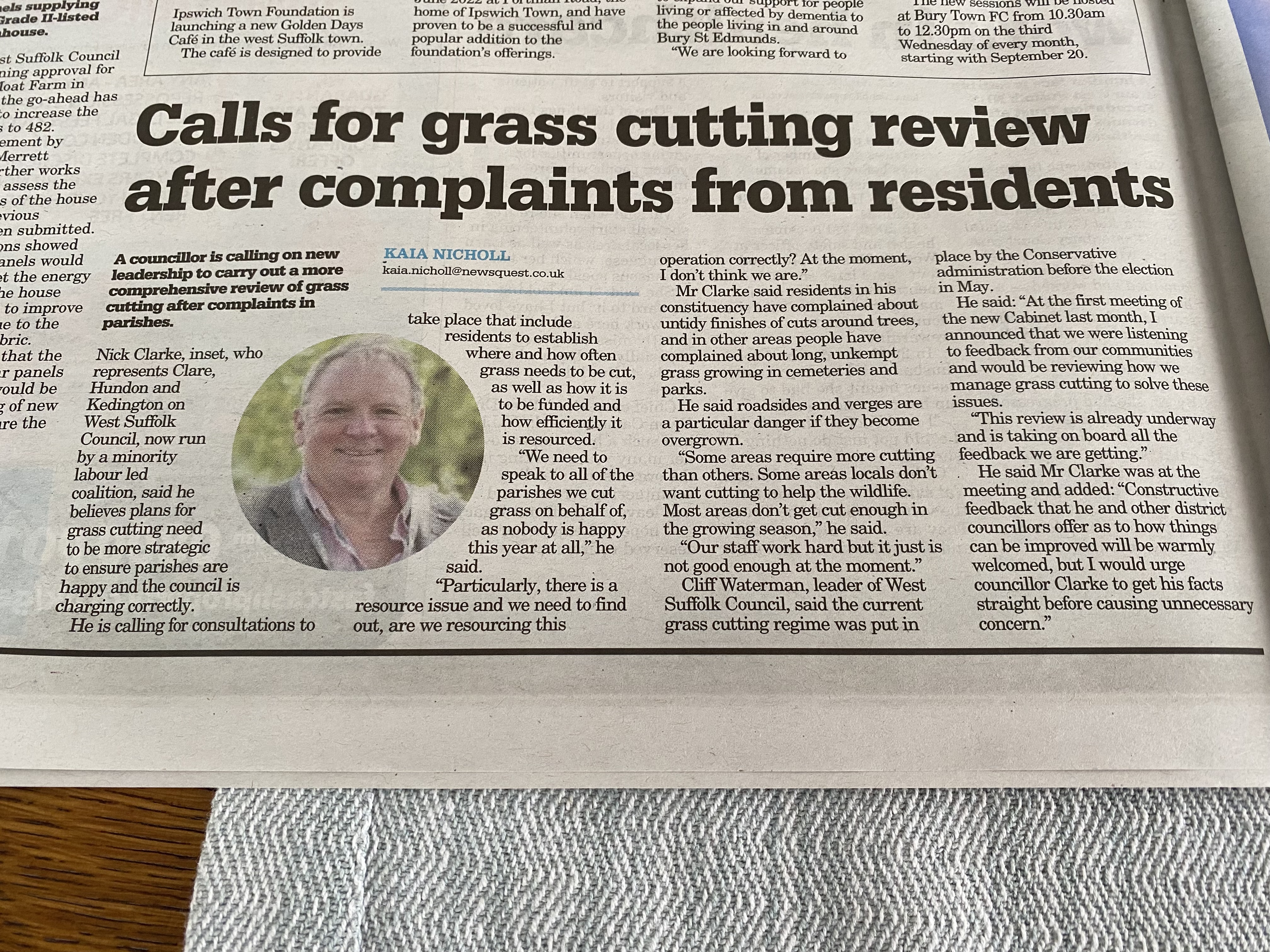 Grass cutting is just not good enough in West Suffolk. Local people quite rightly expect the grass to be cut properly for their council tax. If the complaints to me are anything to go by people are not happy.