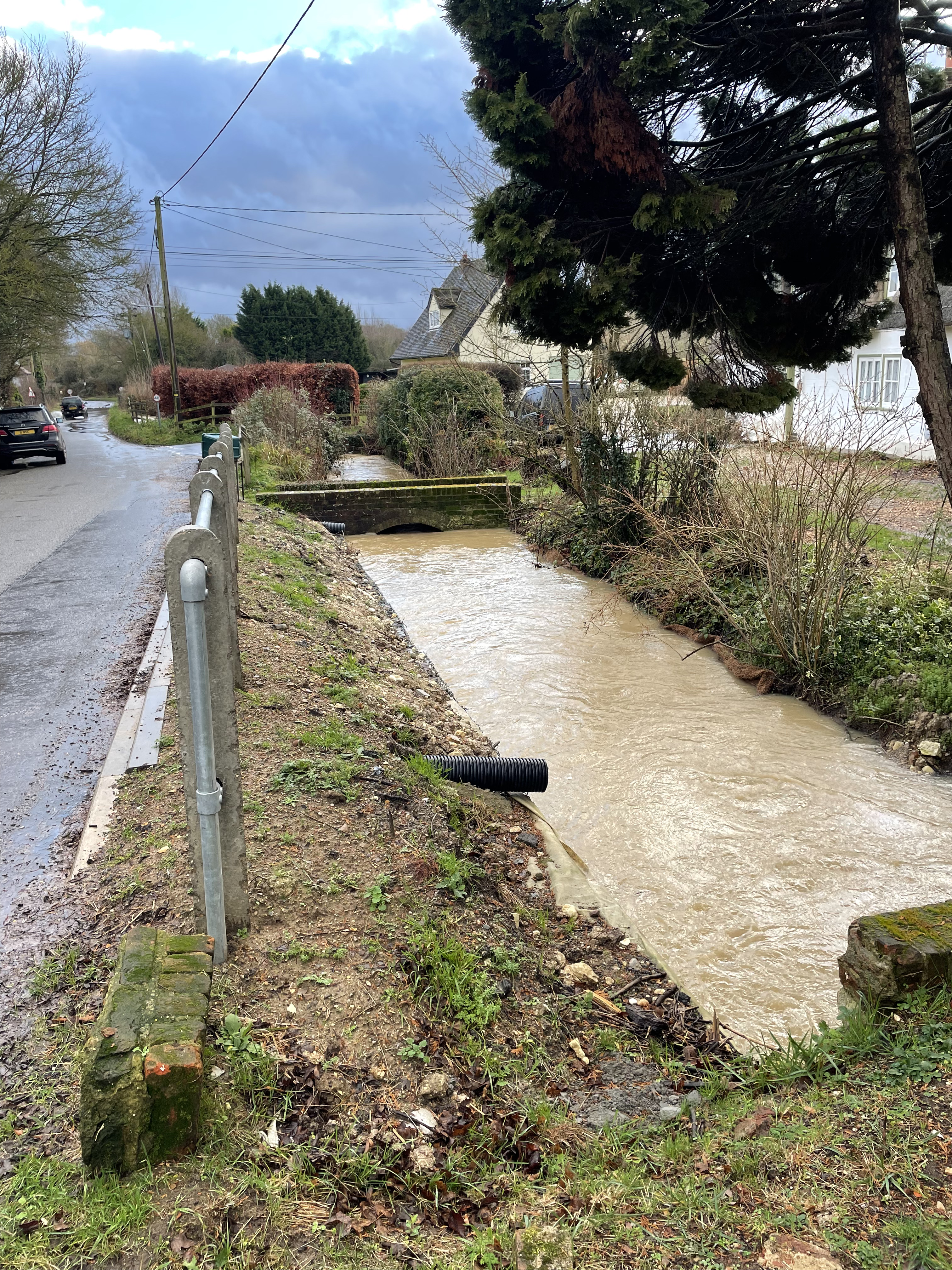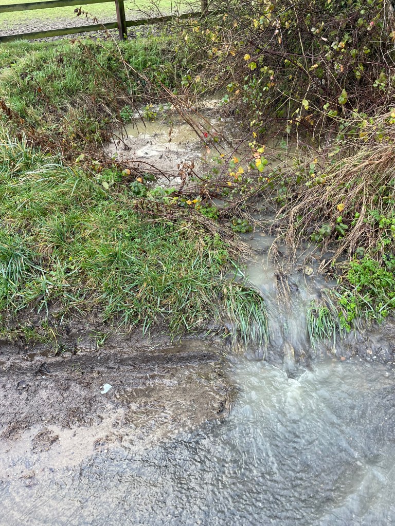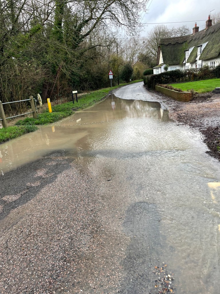 Driving around Hundon today it seems we are not very far away from being flooded again. The roads are awash in places and it isn’t difficult to see why. Some of the drainage pipes that go under the road don’t seem to be coping. I’m not sure if they are blocked or just not big enough. The result is water flowing down the streets and pooling. This must be possible to fix given the right approach.