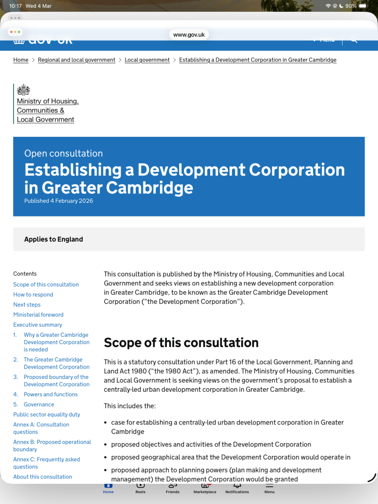 The Labour government is already consulting on creating an Urban Development Corporation (UDC) for greater Cambridge. The consultation opened on the 4th feb and closes on the 1st April (April fools).